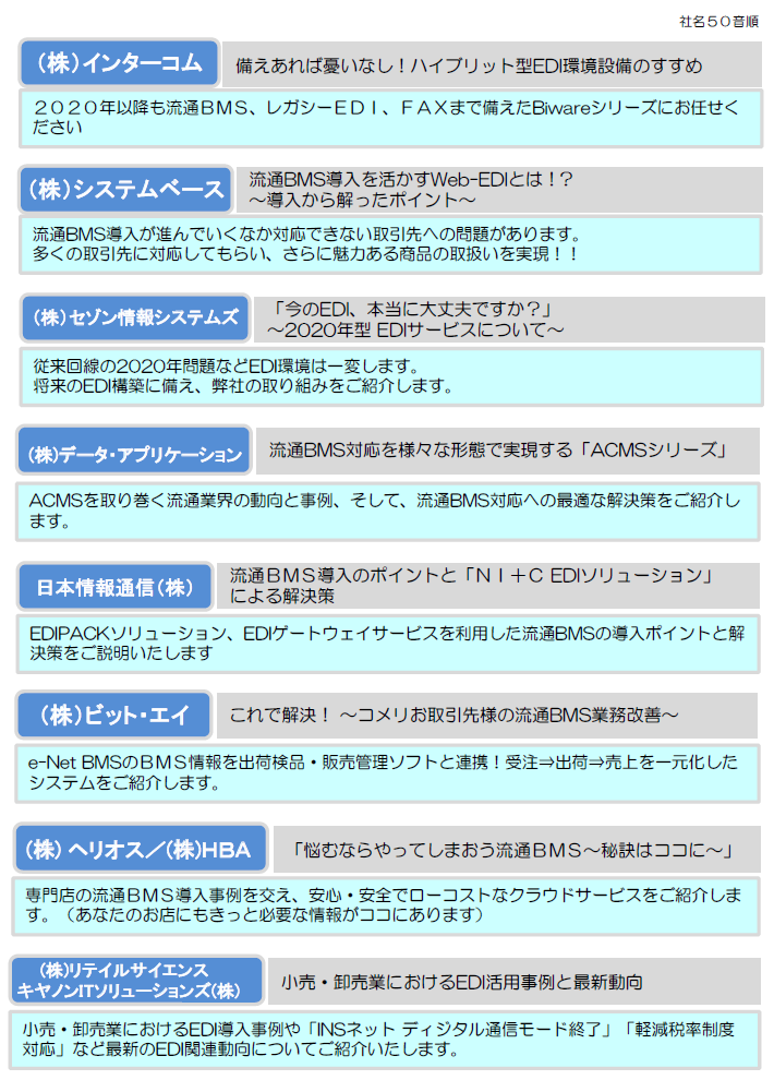 2016年度は、「リテールテックJAPAN2017」内に「流通BMSソリューションゾーン&ステージ」を設け開催いたします。 2017.3.7(火)~10日(金) 東京国際展示場【東京ビッグサイト】東ホール 午前10時〜午後5時(最終日のみ午後4時30分) ・出展企業名、出展内容
