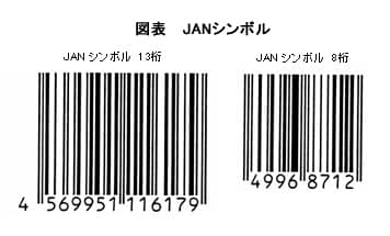 JANコードには標準タイプの13桁と小物商品にのみ利用できる短縮タイプの8桁があるため、JANシンボルも13桁と8桁の2種類の規定があります。(国際的にはEAN-13、 EAN-8バーコードシンボル)